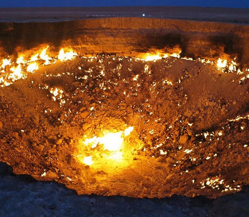观察天然⽓坑的夜景。